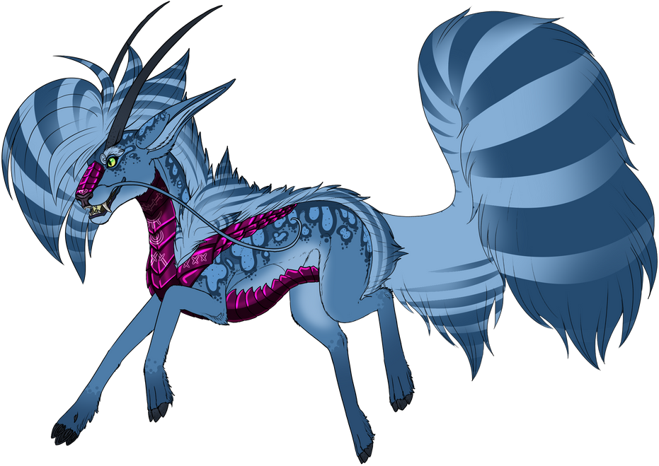 Phenotype: (---) (Sapphire Fawn with Blanket, Dorsal, Fleabitten, Pangare, Socks, Mane Tips, Python, Gradient, Barred, Spots, and Inked)