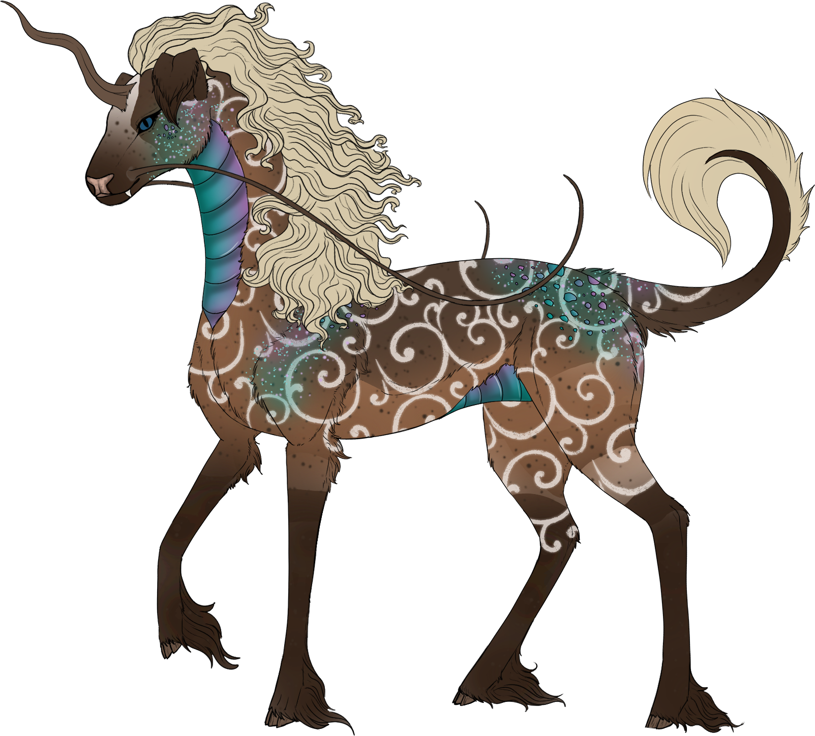 Phenotype: (---) (Fawn with Banding, Fleabitten, Mask, Pangare, Socks, Underbelly, Bicolor, Siamese, Shimmer and Swirl)