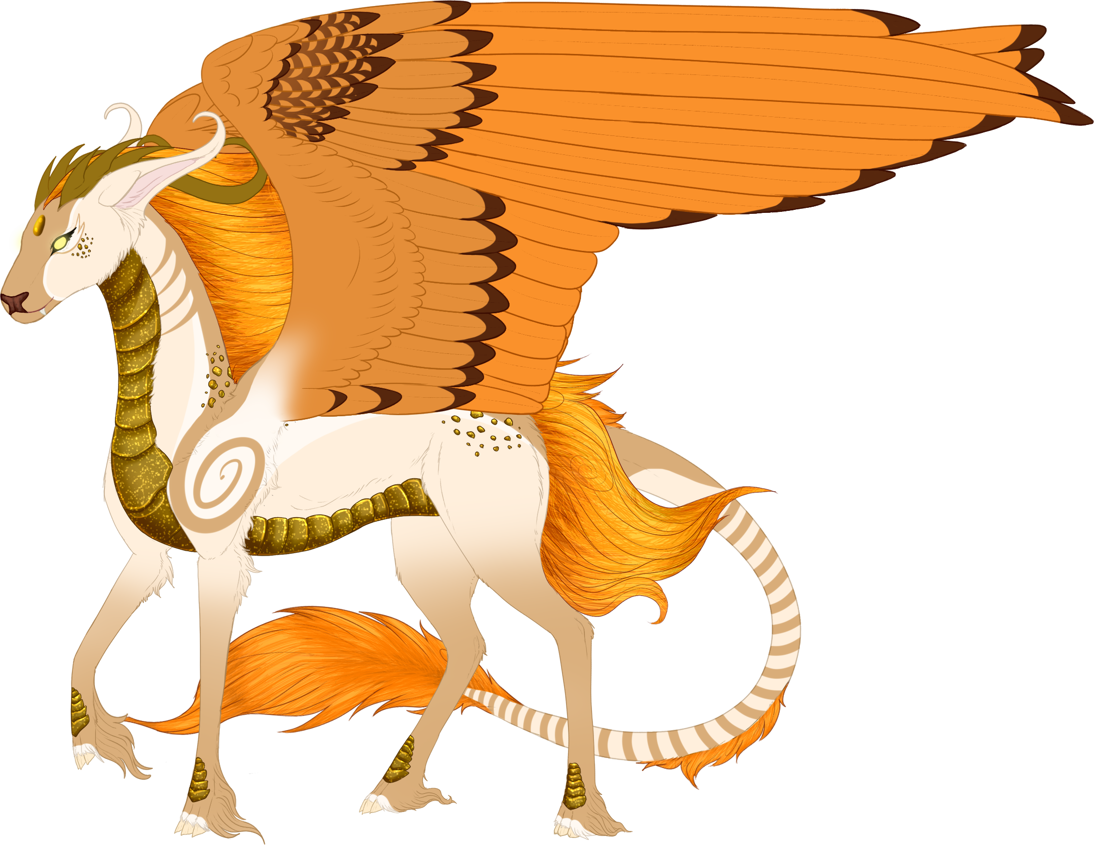 Phenotype: (---) (Cream with Blanket, Socks, Banding, Vibrant Mane, Eye Marks, Iridescent Scales, Glimmer, Gradient, Traced, Siamese, Paint, Swirl, Dorsal and Reversal)