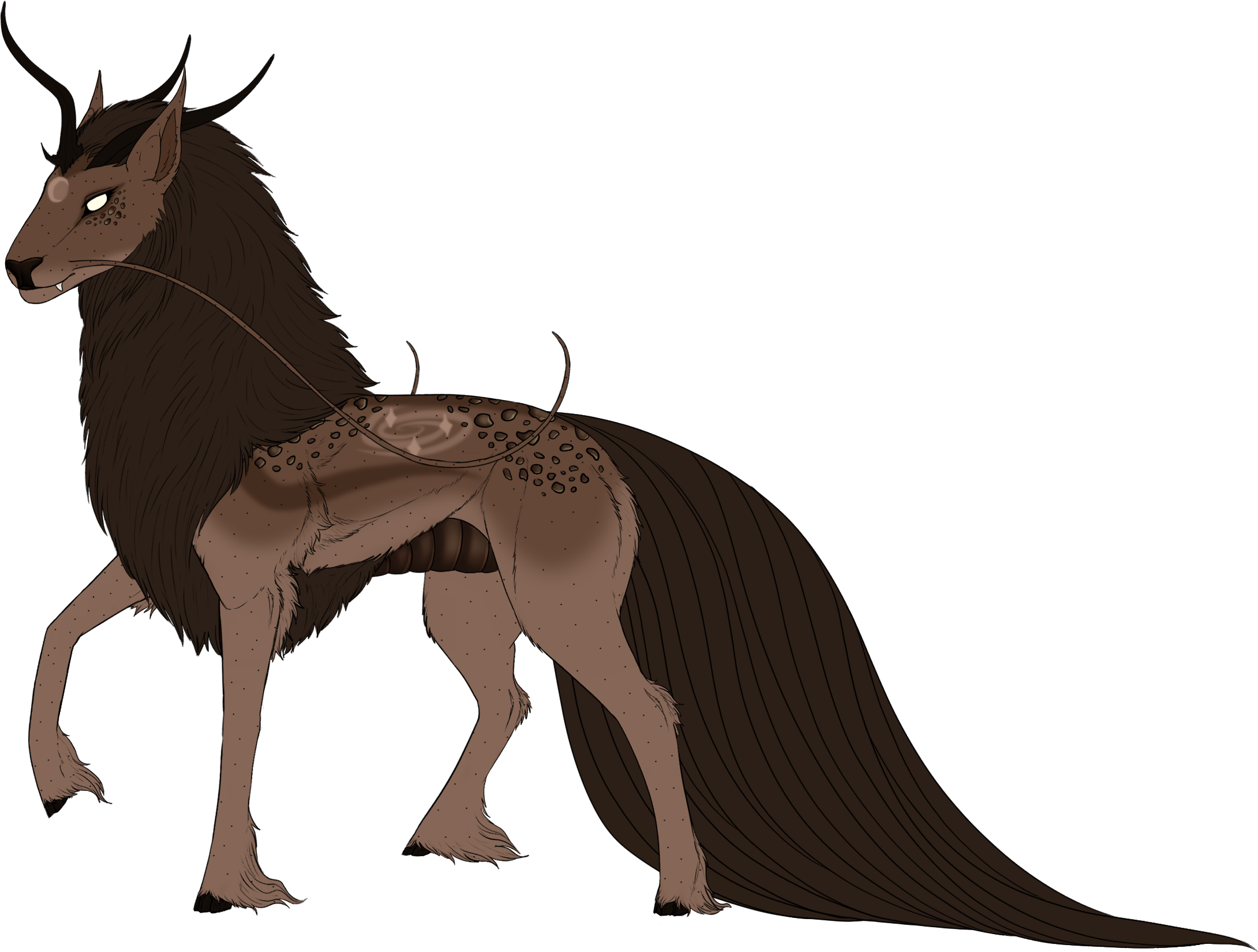 Phenotype: Fawn with Crescents, Dorsal, Fleabitten, Mask, Pangare, Eye-Marks, Gazelle, Embossed and Swirl