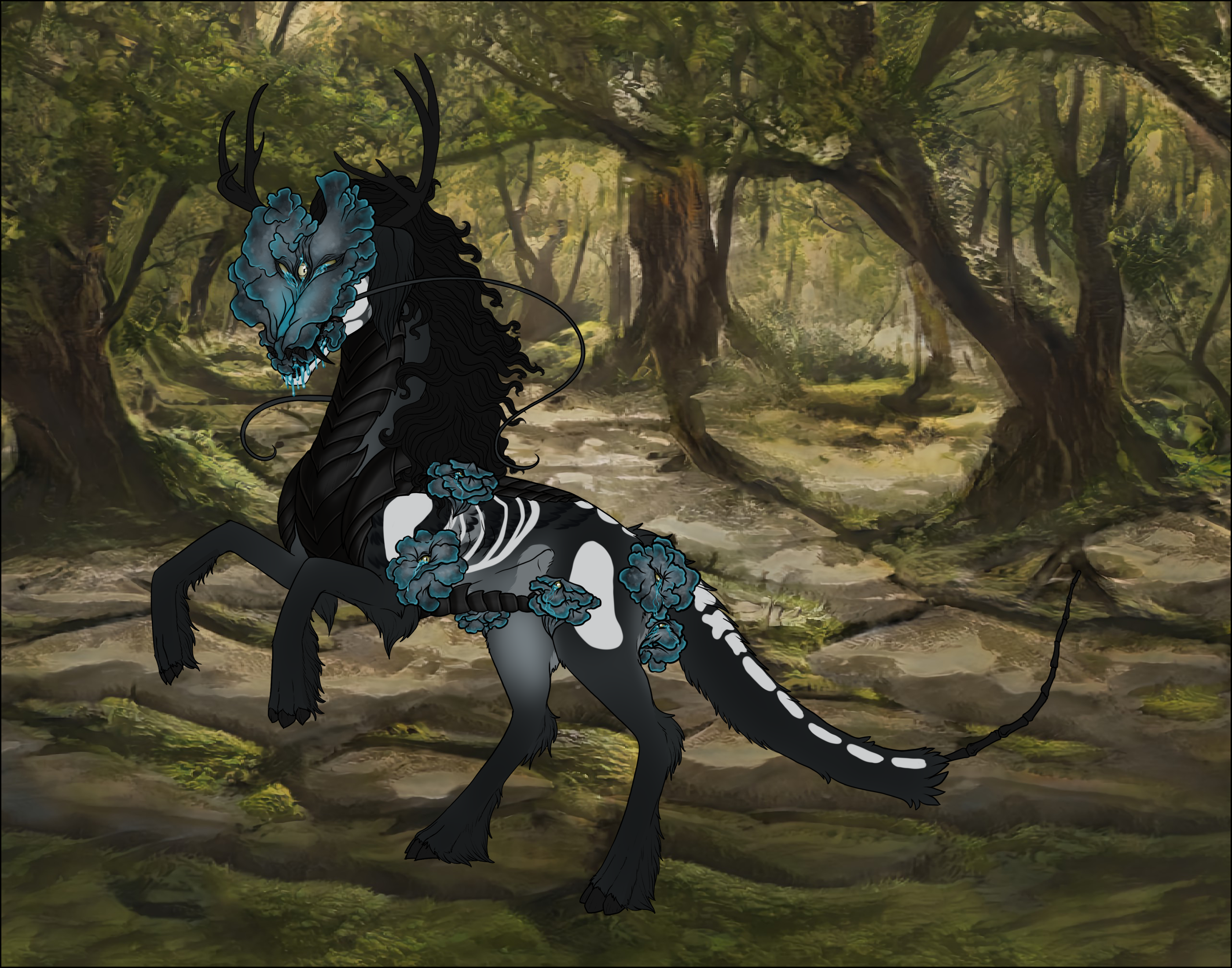 Phenotype: (---) (Silver Sapphire Chestnut with Mask, Pangare, Sable, Siamese, Skeleton, Panda, Crescents, and Fox)
