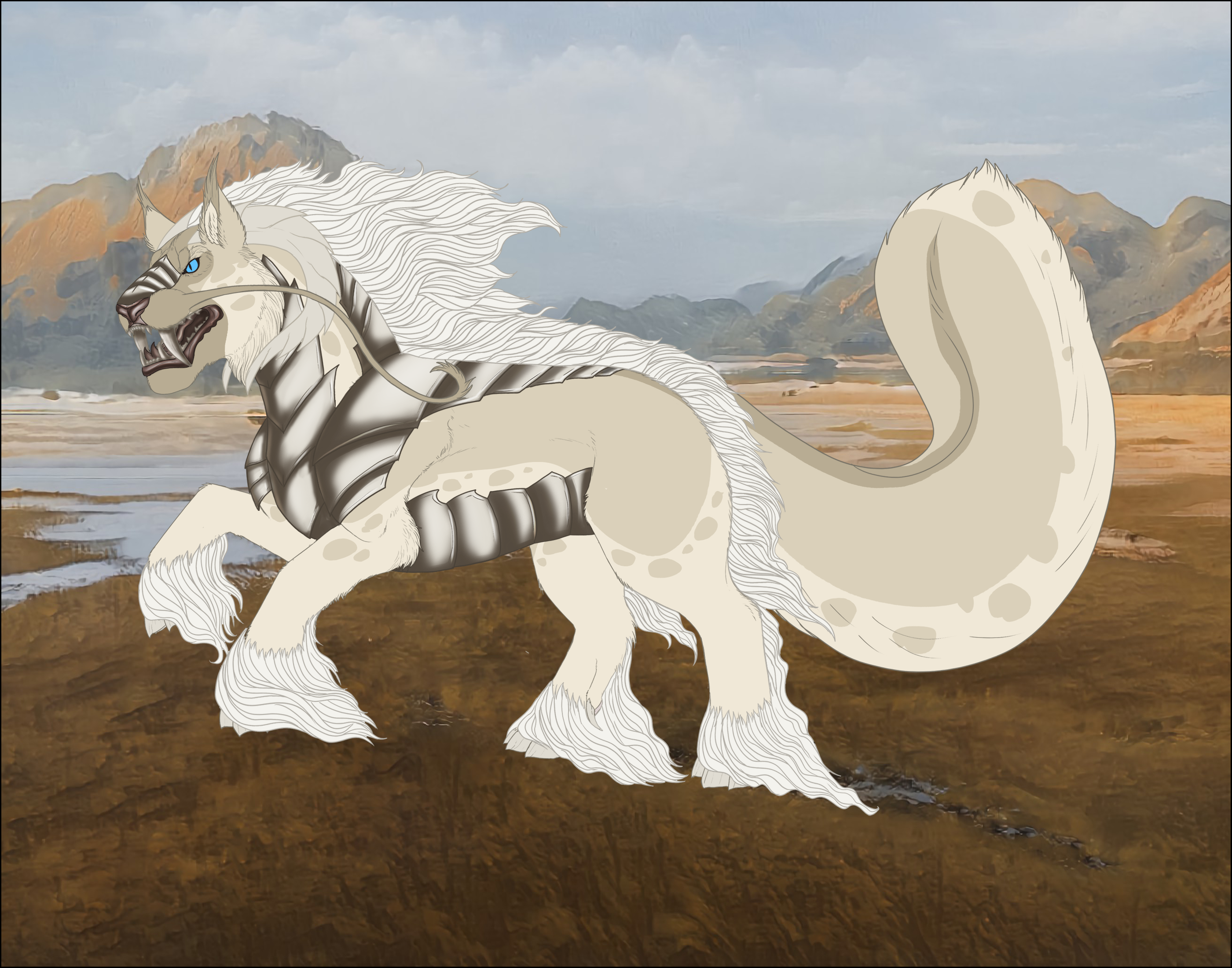 Phenotype: Cream with Blanket, Dorsal, Mask, Spots and Vibrant-Mane