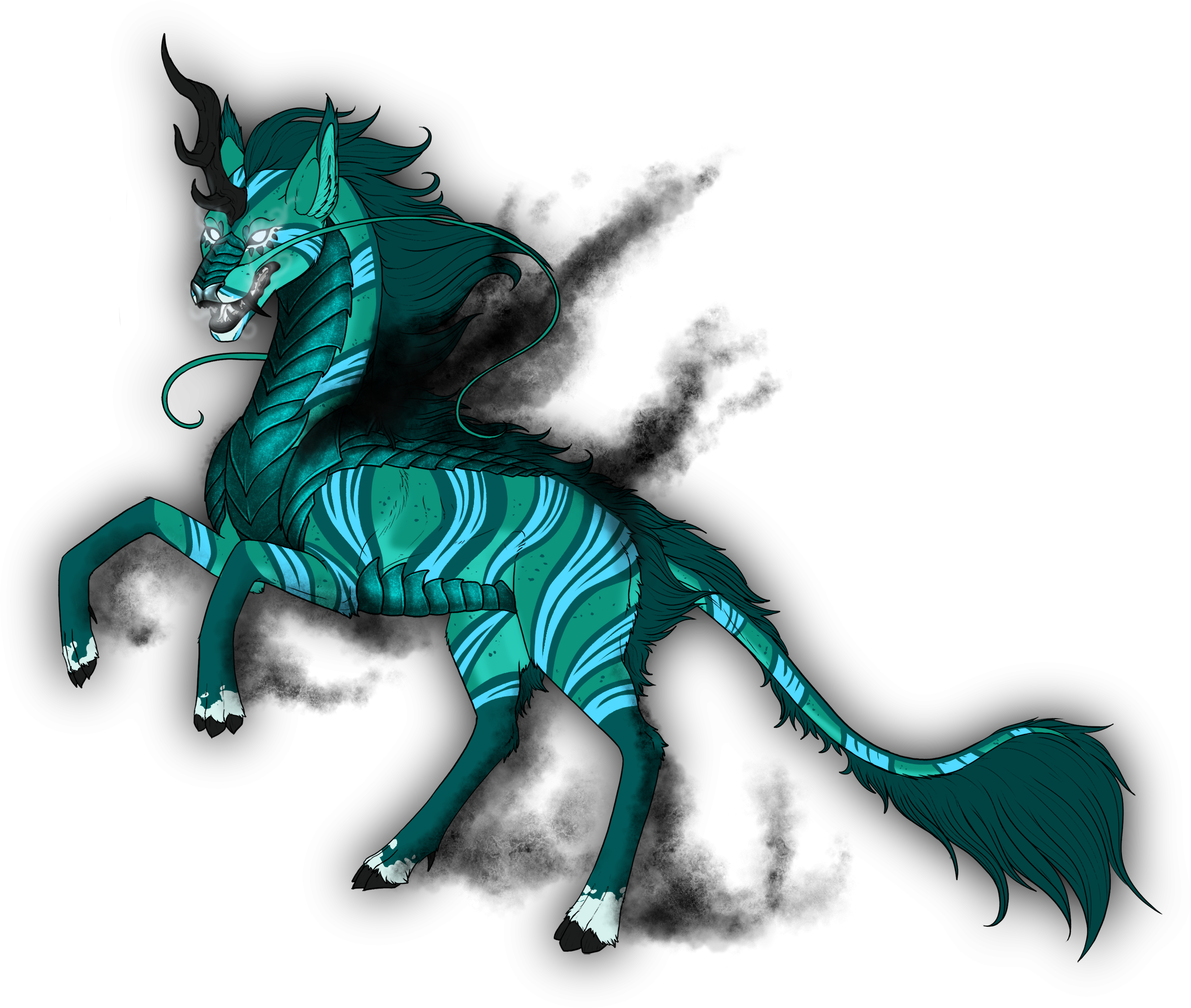 Phenotype: (---) (Turquoise Chestnut with Banding, Dorsal, Fleabitten, Pangare, Socks, Striped, Iridescent Scales and Glimmer)