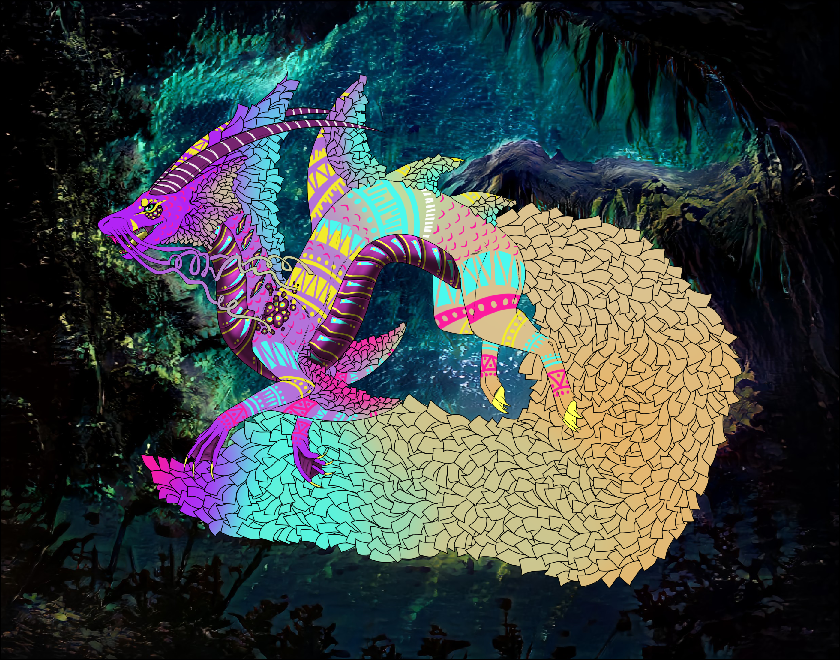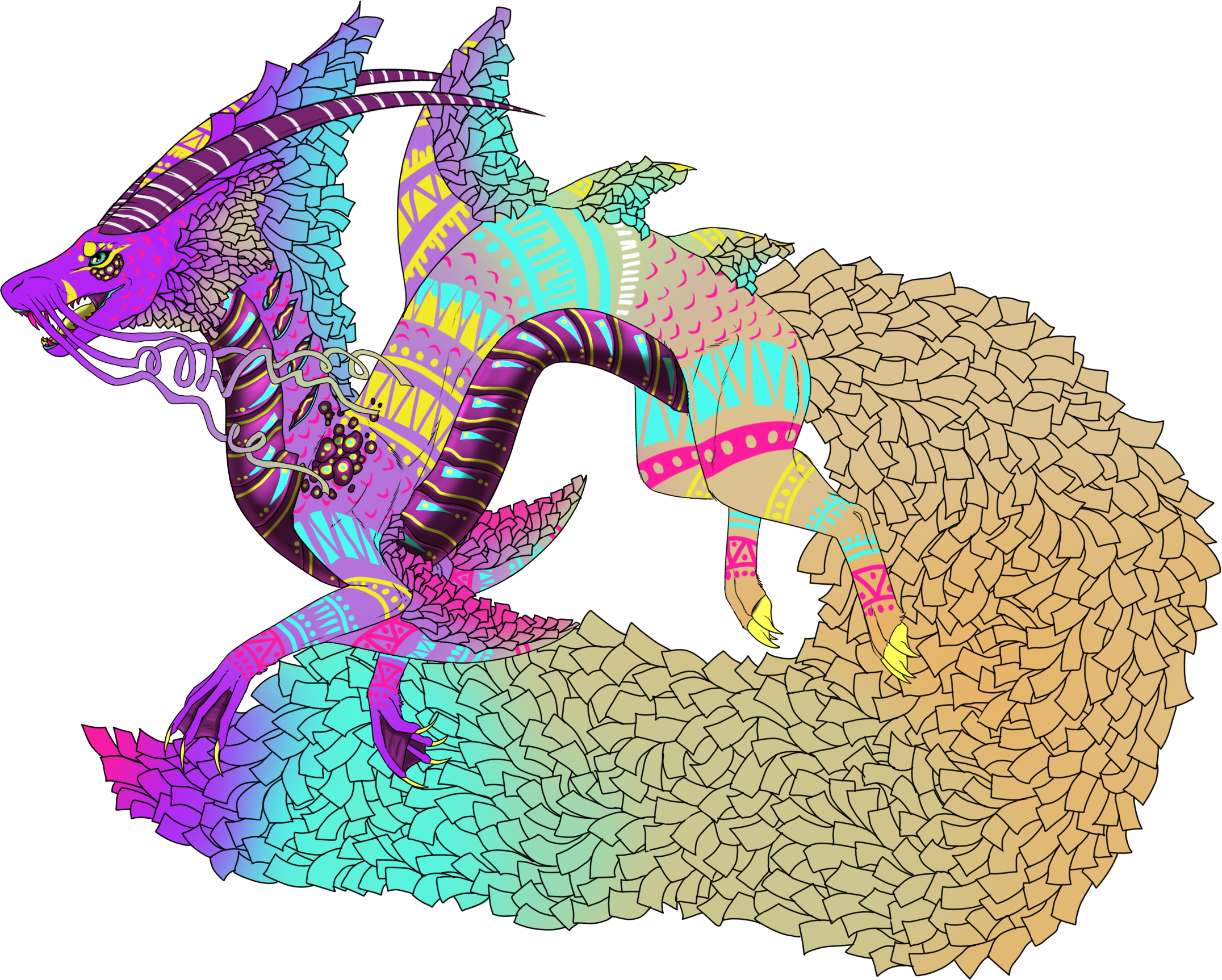 Phenotype: (---) (Chestnut with Alabrije, Mottled, Barring, Pinata, and Splash)