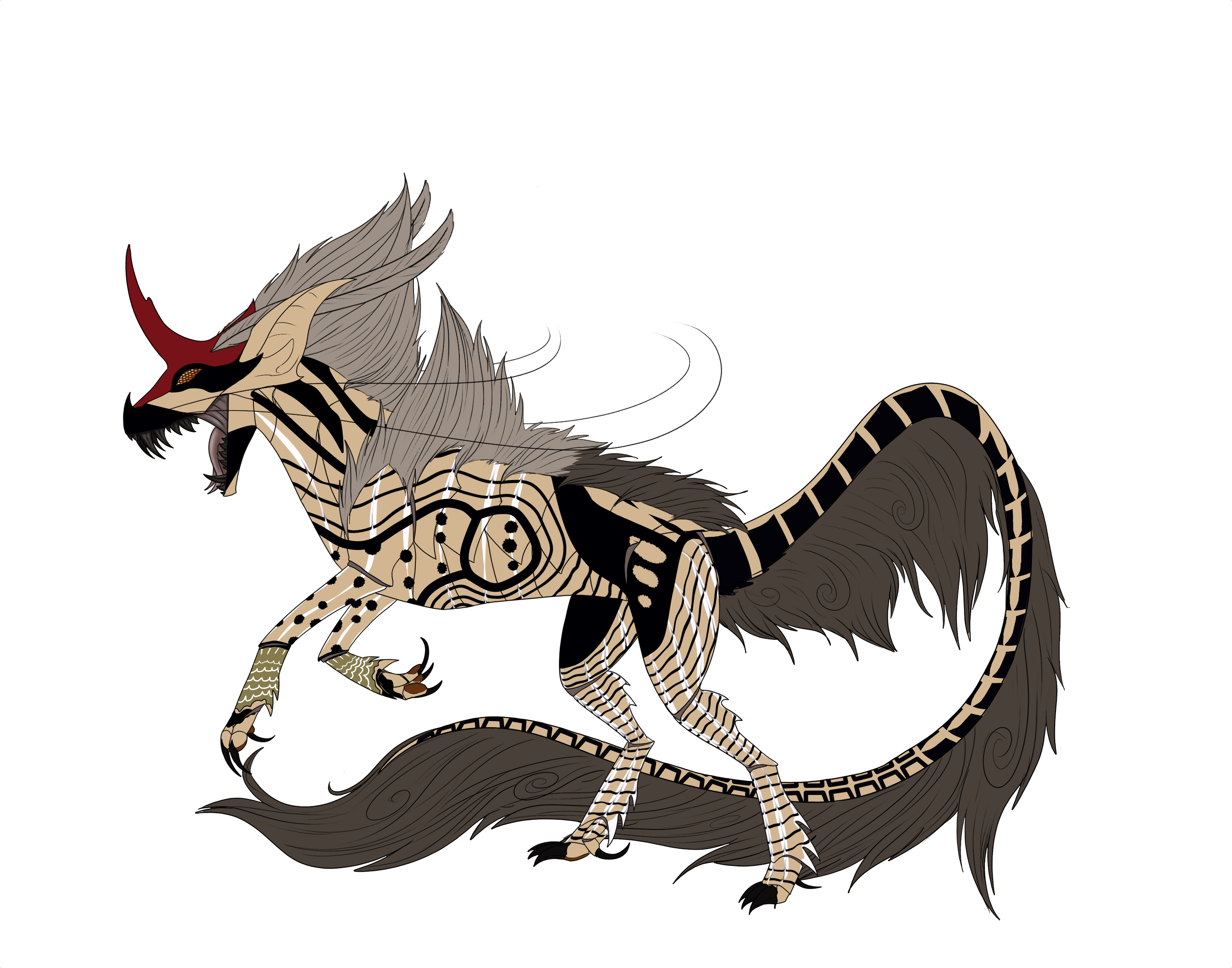 Komakha/Nightamre Cross with 1 common and 3 rare traits, 3 common and 1 uncommon marking, common coat with silver