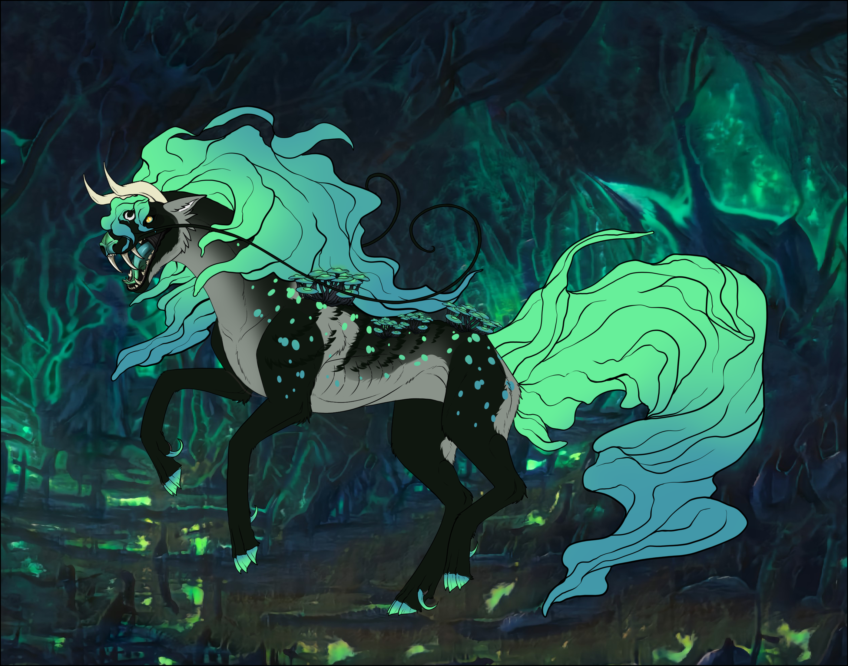 Phenotype: (---) (Silver Jade Black with Crescents, Dapples, Dorsal, Mask, Panda, Pangare, Sable, Zag, Glimmer, Fox, Vibrant Mane and Bicolor)