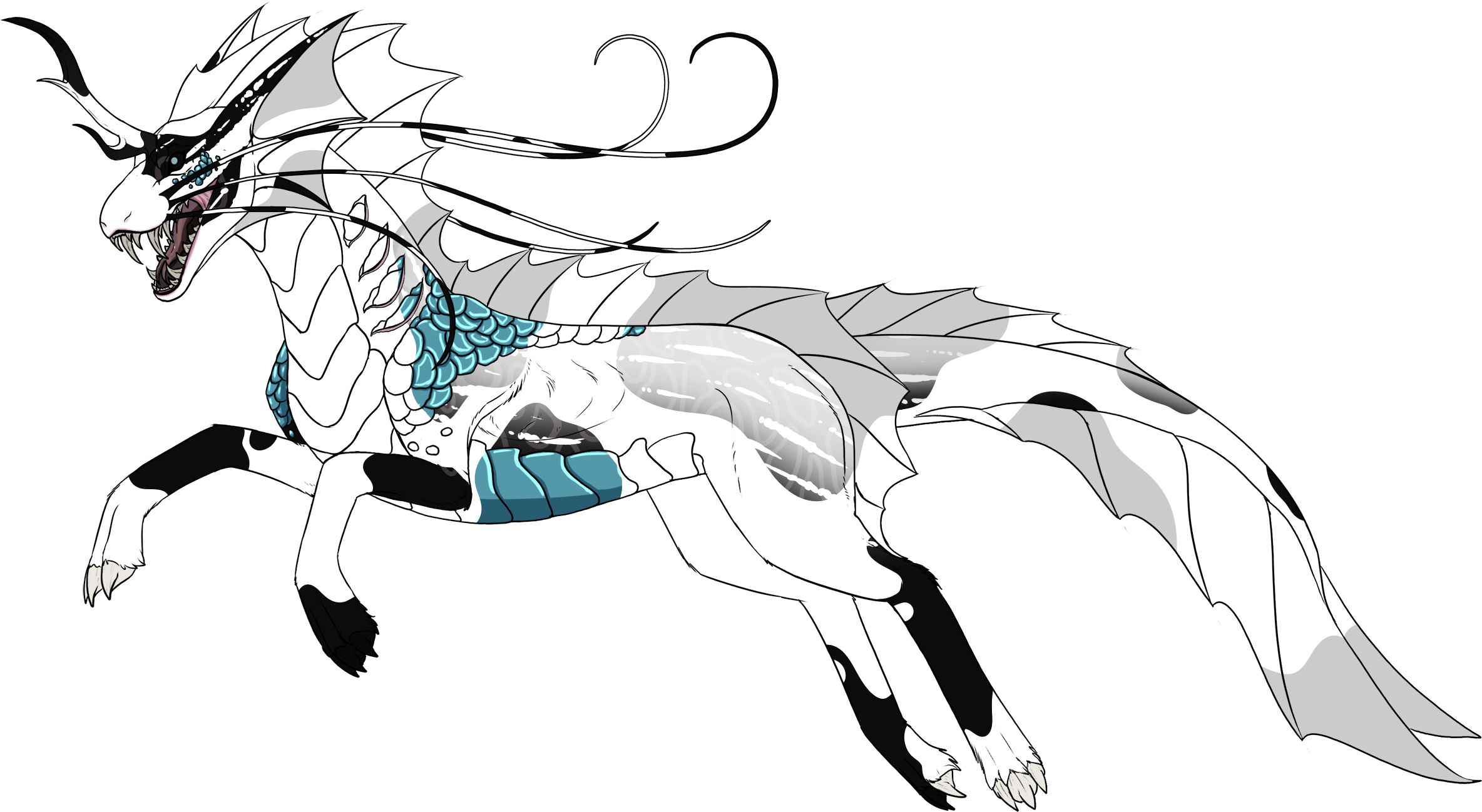 Phenotype: (---) (Black with Roan, Piebald, Rings and Tapir)