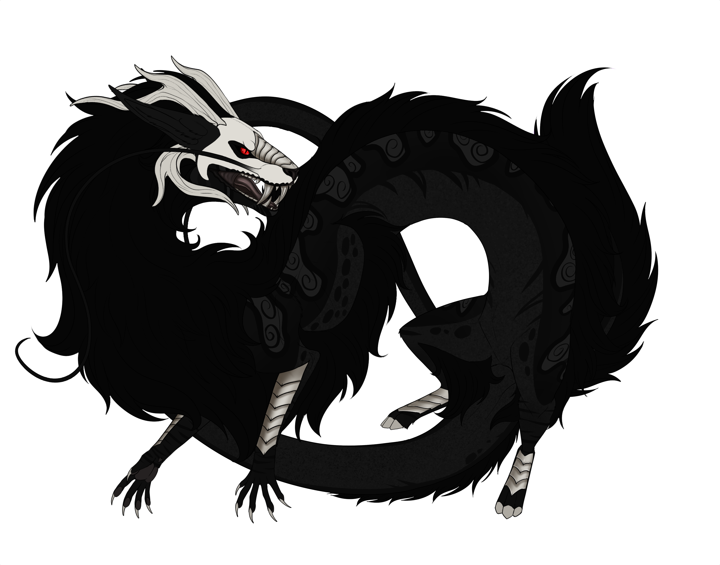 Phenotype: Black with Blanket, Collar, Mask, Mottled, Socks, Spots, Striped, Dun, Traced, Swirl and Skeleton