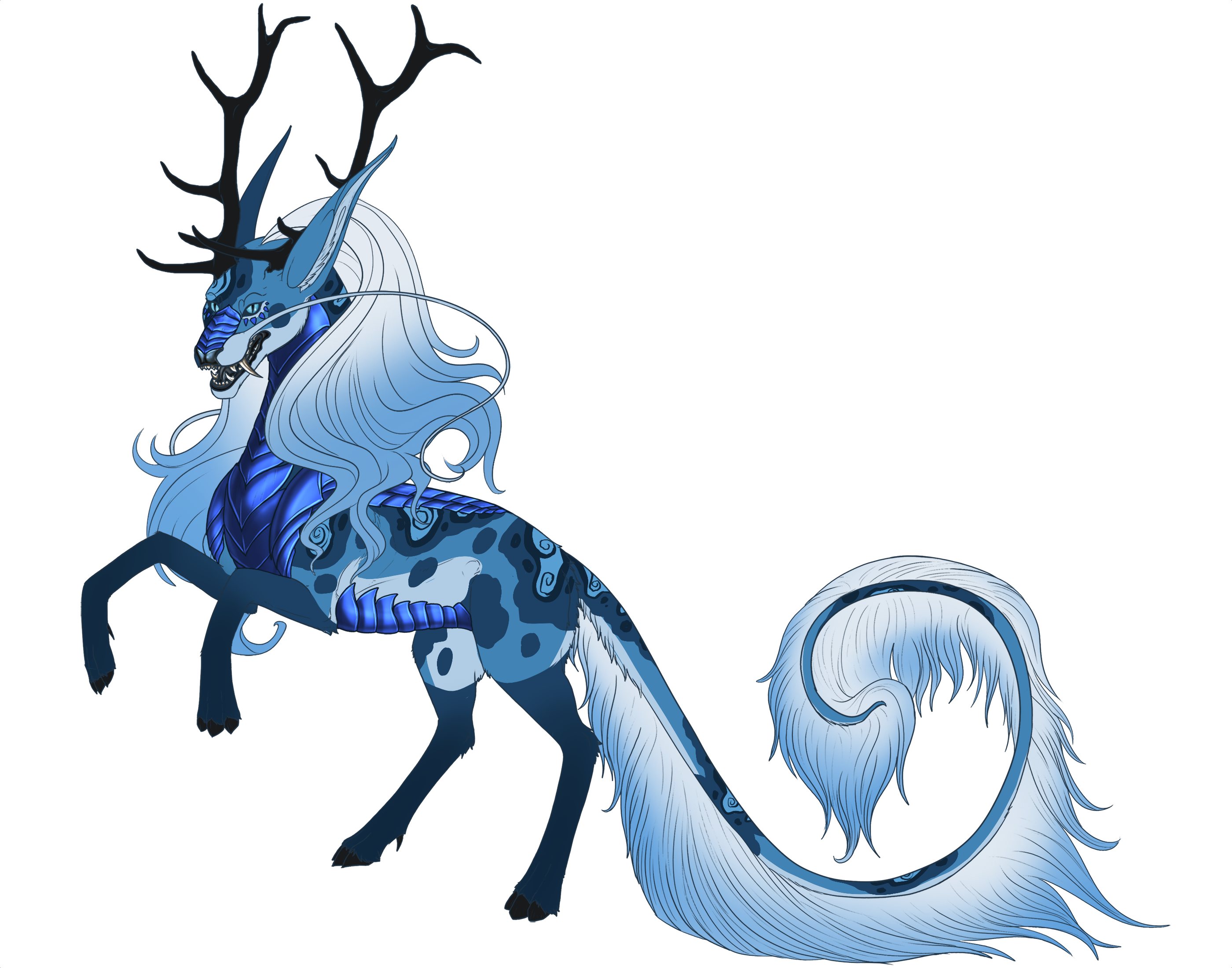 Phenotype: (---) (Silver Sapphire Gold with Collar, Socks, Spots, Underbelly, Mane Tips, Patches, Python, Siamese and Swirl)
