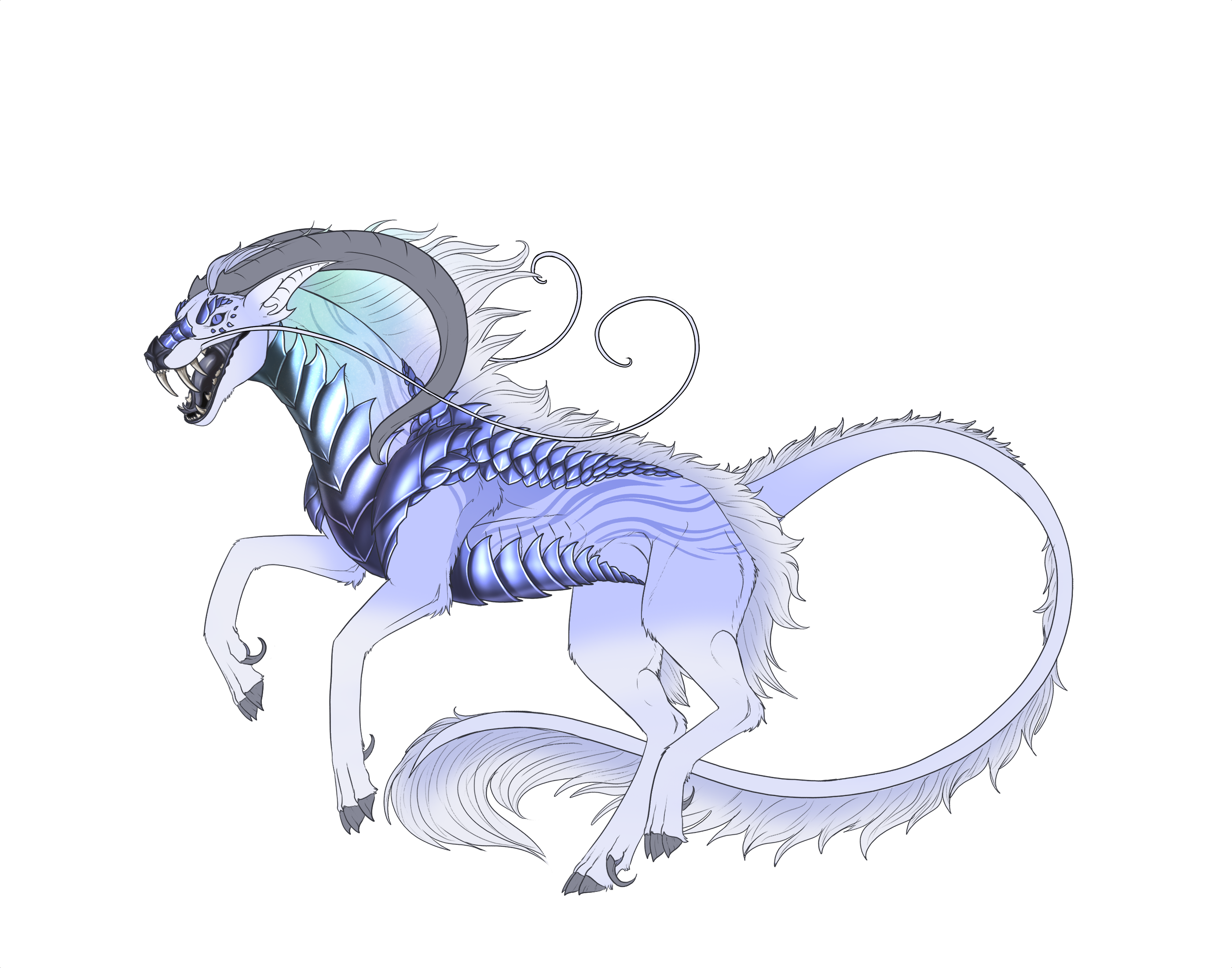 Phenotype: (---) (Sapphire Cream with Gradient, Saddle, Flow, Mane Tips, Siamese, Pigeon and Reversal)
