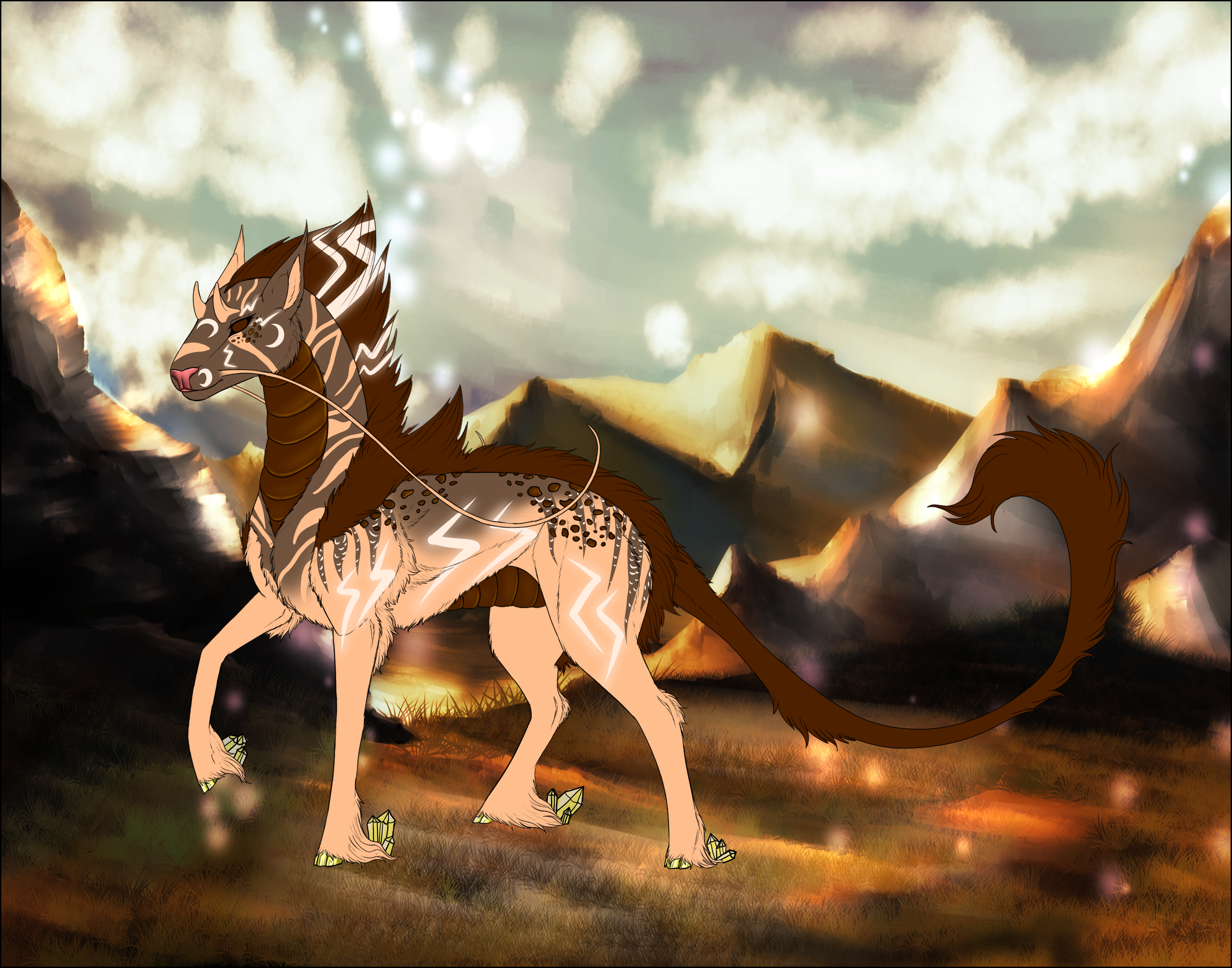 Phenotype: Silver Ruby Cream with Crescents, Saddle, Striped, Zag, Quagga and Gilded