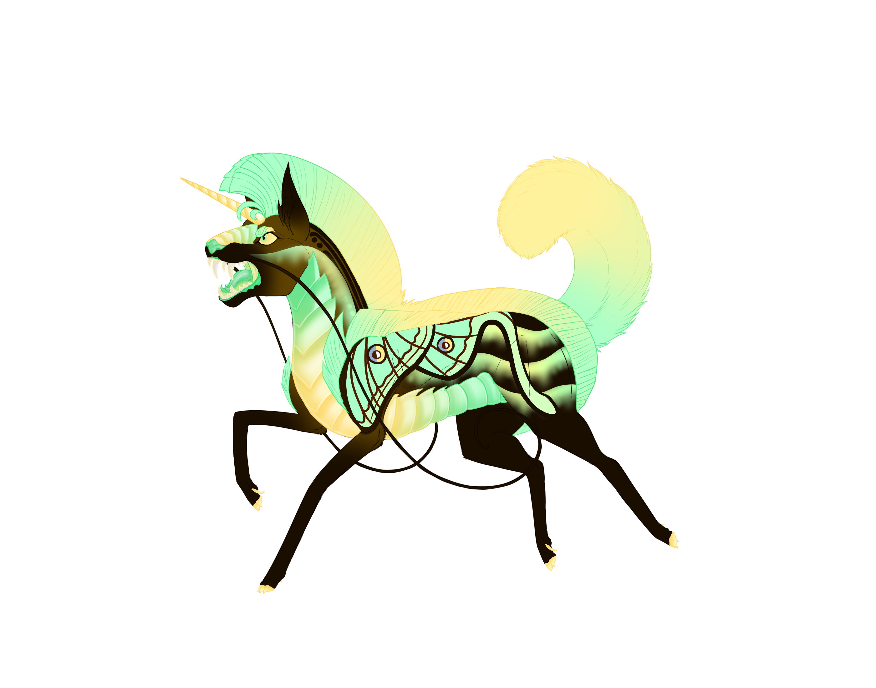 Phenotype: (---) (Topaz Black with Dipped, King Cheetah, Falsewing, Bicolor, Siamese, Vibrant Mane, and Aurora)