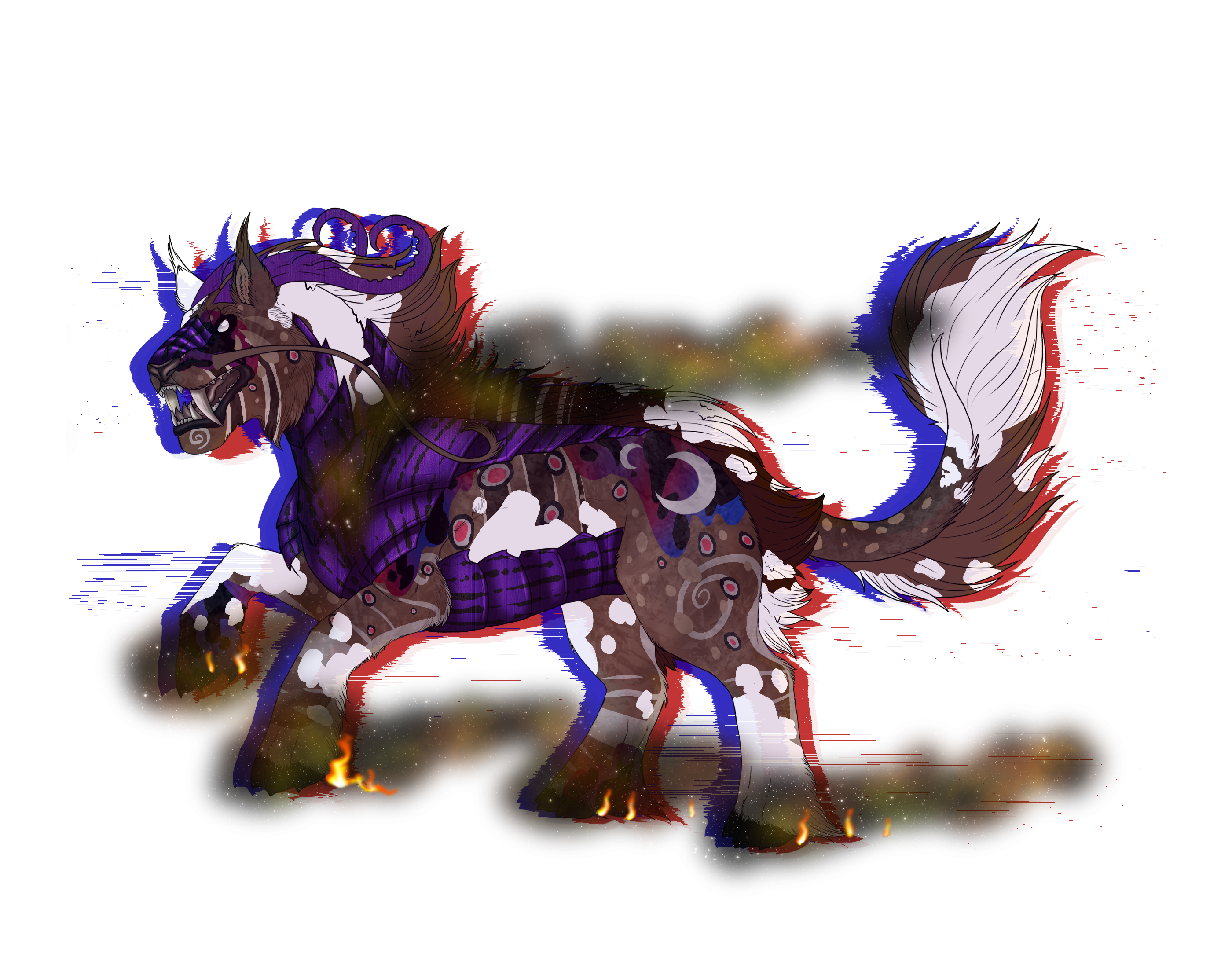 Phenotype: Fawn with Spots, Pangare, Teardrop, Okapi, Piebald, Toxin, Deadwood, Crescents, Nebula, Smoke, Banding, Jasper, Swirl, Reversal, Fade and Stone