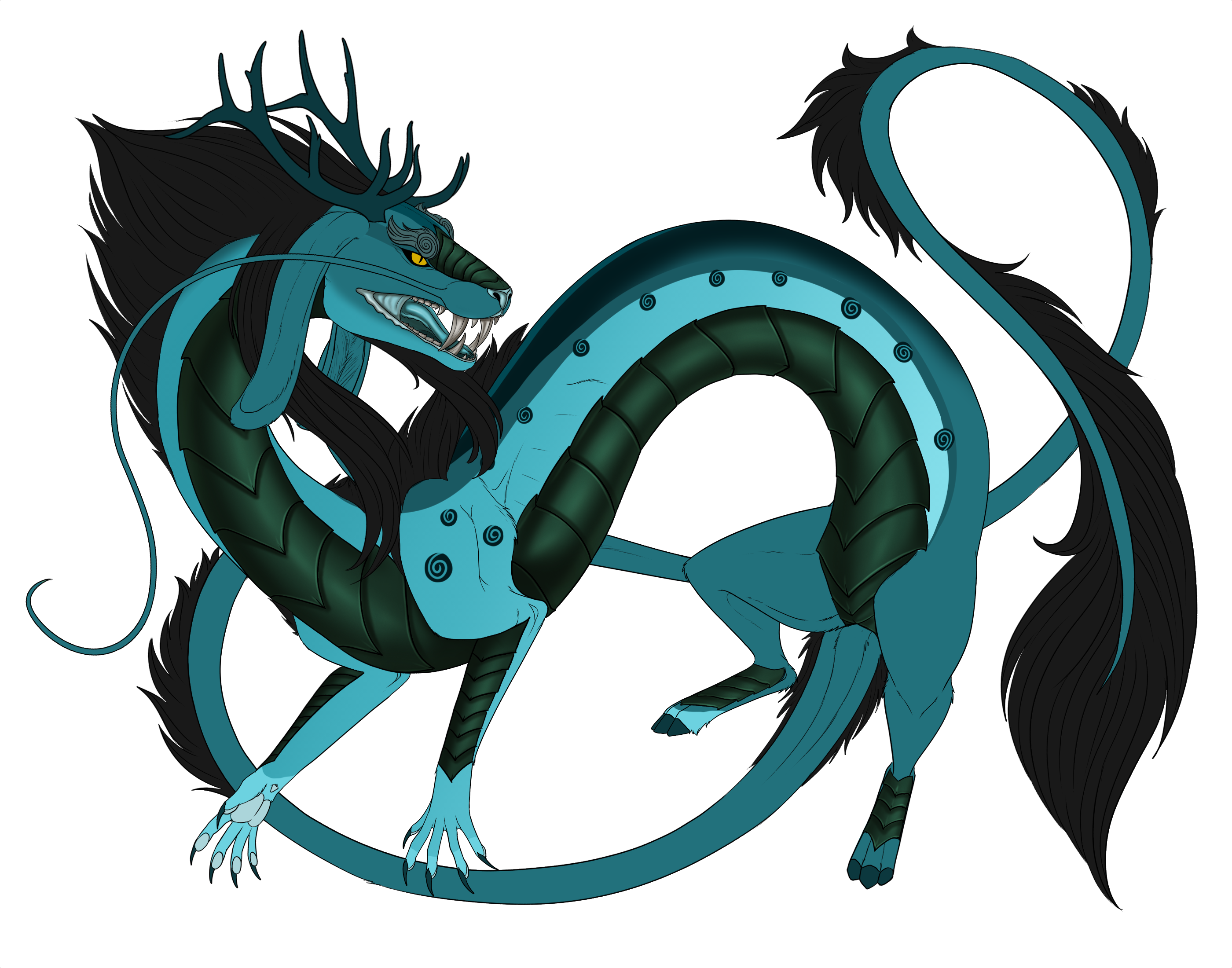 Phenotype: (---) (Aquamarine Chestnut with Dorsal, Gradient, Sable, Gazelle, Socks, Spots and Swirl)