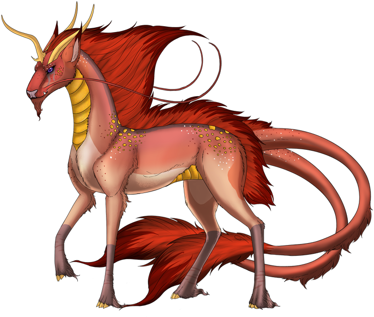 Phenotype: (---) (Erythristic Fawn with Dipped, Dorsal, Fleabitten, Frosted, Mask, Pangare, Socks, Sable, Underbelly, Fox, Eye Marks, Iridescent Scales, Mane Tips, and Satin)