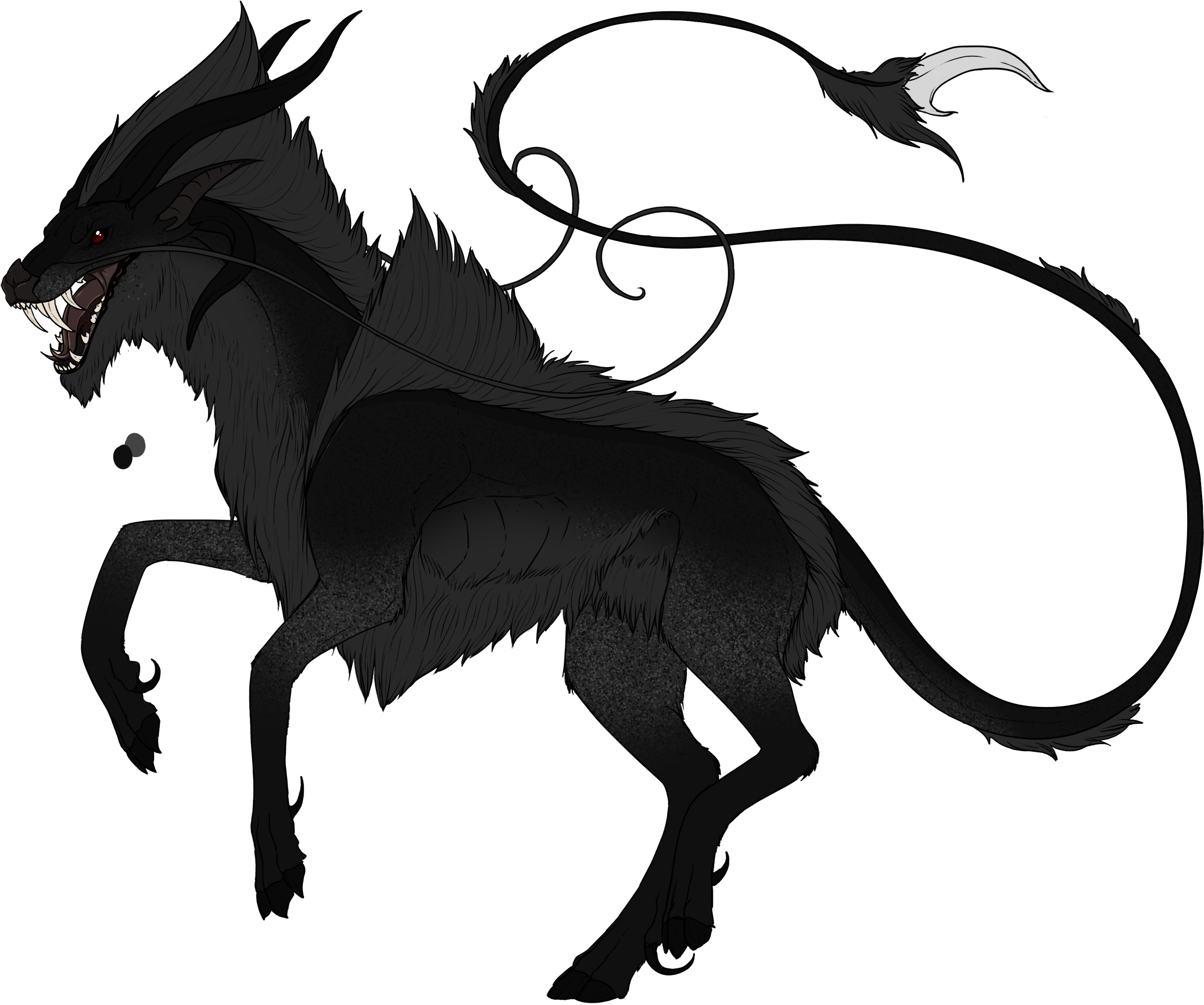 Phenotype: (---) (Black with Dorsal, Fleabitten, Mottled, Sable, and Siamese)