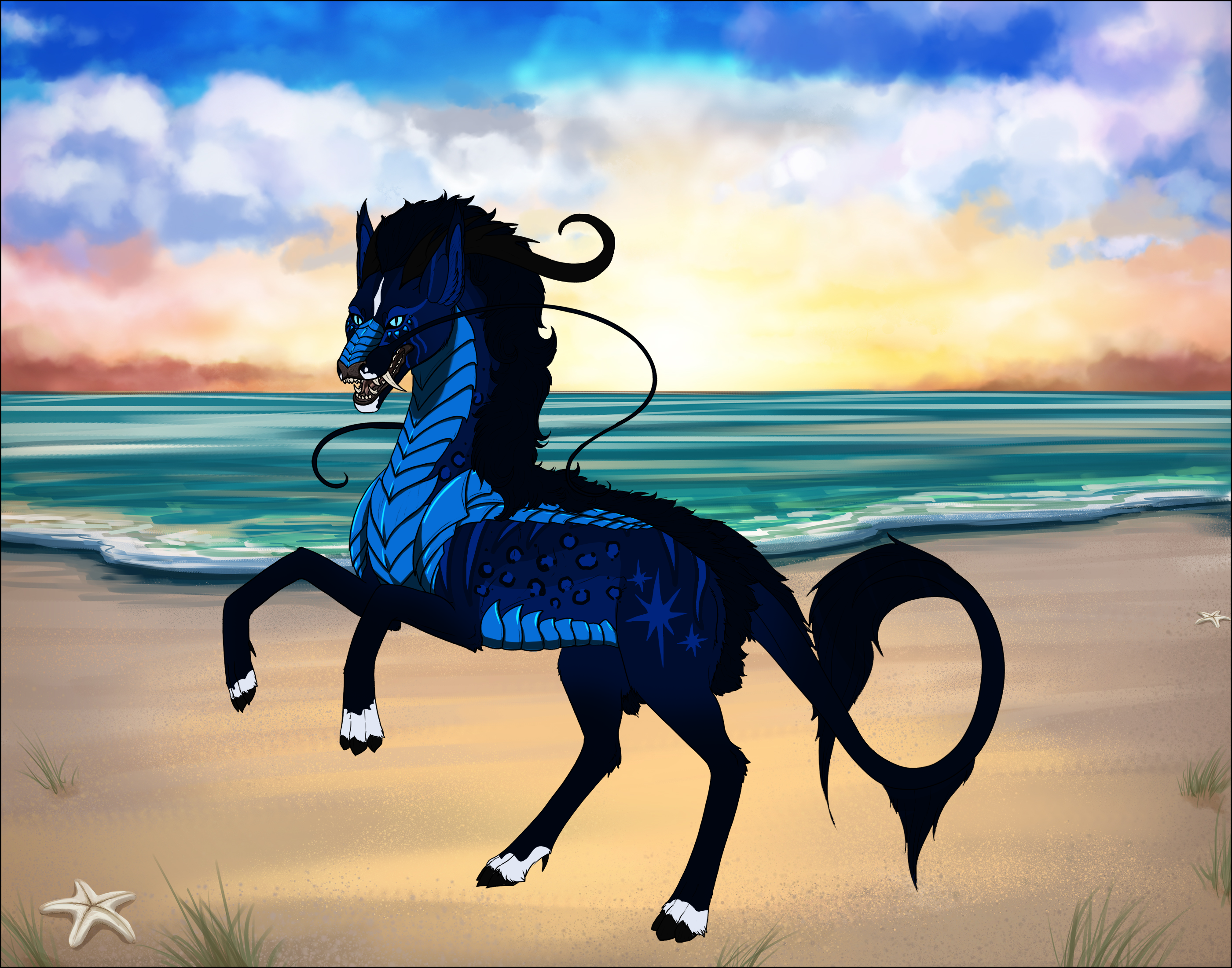 Phenotype: (---) (Sapphire Black with Banding, Blanket, Dorsal, Panda, Striped, Underbelly, Eye Marks, Socks, Siamese, and Embossed)