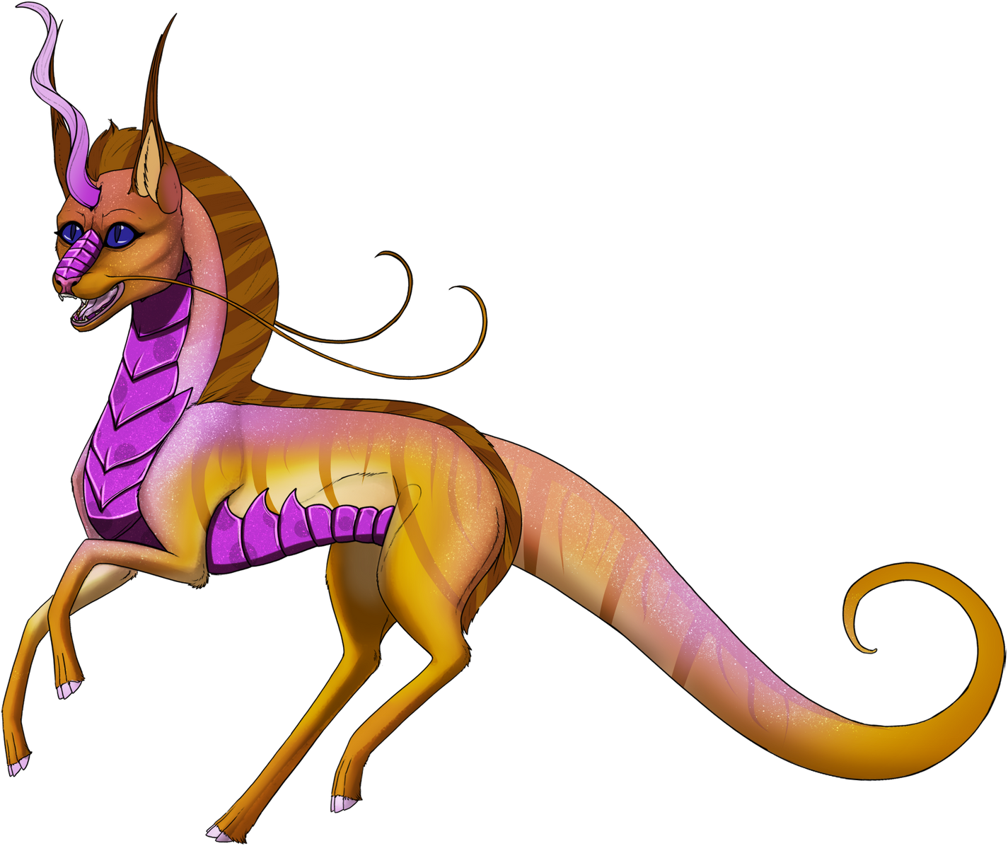 Phenotype: (---) (Topaz Chestnut with Banding, Collar, Dorsal, Frosted, Hood, Pangare, Sable, Stained, Striped, Iridescent Scales, Siamese, Stroke, Pigeon, Satin and Shimmer)