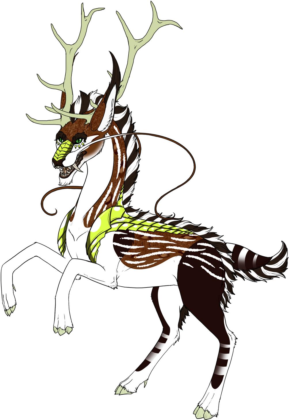 Phenotype: (---) (Chestnut with Tapir, Splash, Panda, Stroke, Mottled, Banded, Gradient, Bleached and Underbelly)