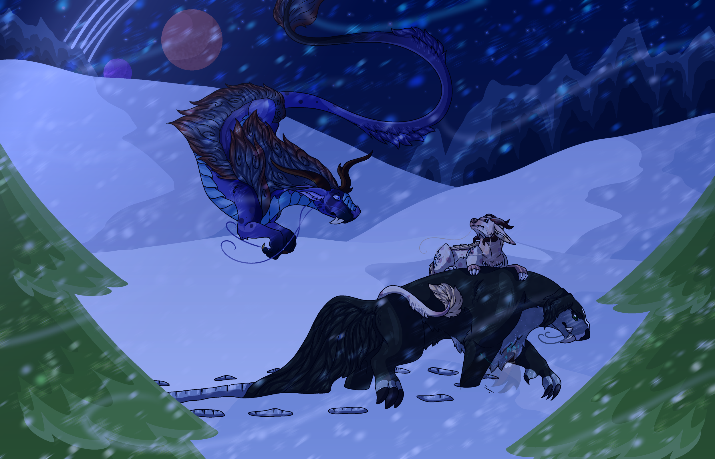 Sabri, Tickled Pink Shivers, and Avocado trudge forward through the howling blizzard and deep snows, searching for their destination.